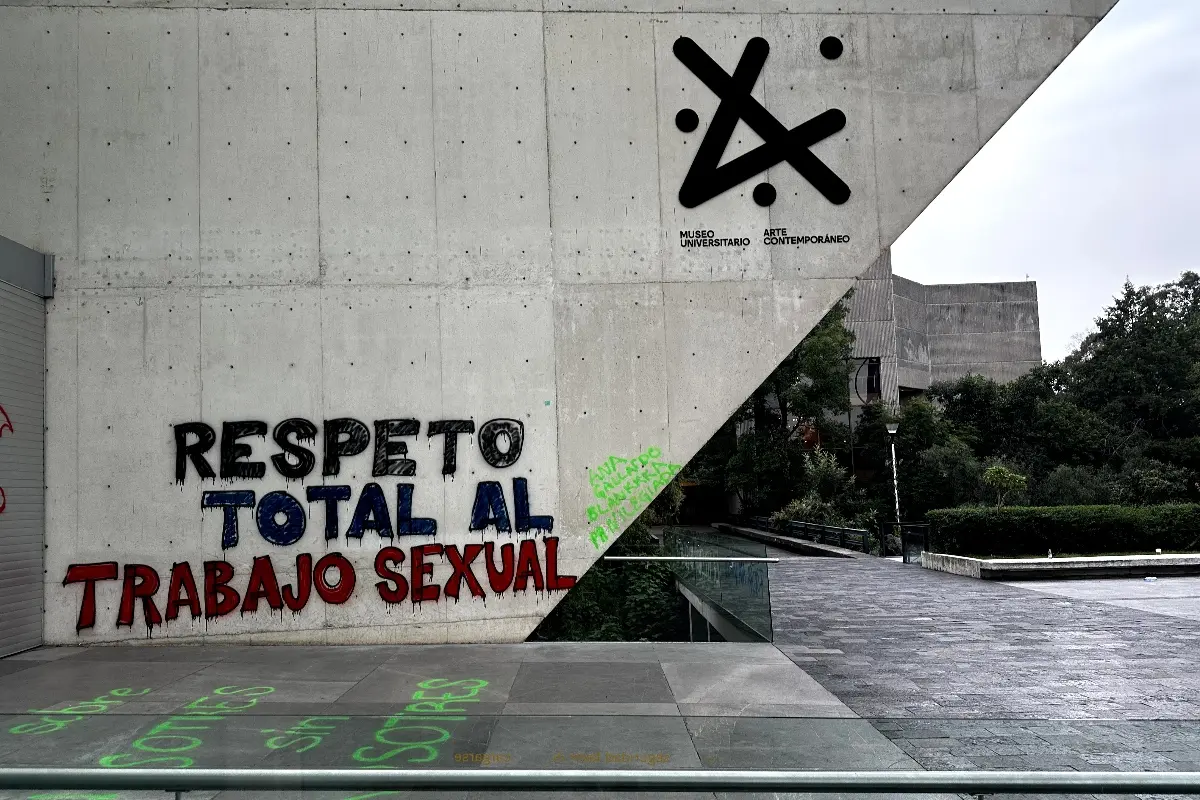 Las pintas de este domingo incluyen consignas como “La violencia no es arte”, “respeto total al trabajo sexual”, “UNAM PUTxFOBICA” y “Ana Gallardo Blankkka, sal de tu burbuja”.