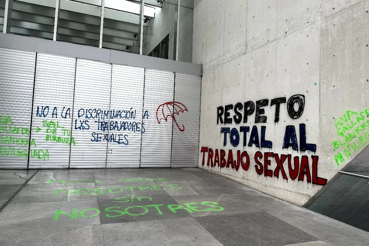 El domingo por la tarde ocurrió la protesta con intervención de mensajes en las puertas del MUAC y la espiga del Centro Cultural Universitario con mensajes que dicen “La violencia no es arte”, “UNAM putxfóbica” y señalando la condición de blanquitud y privilegio de la autora.