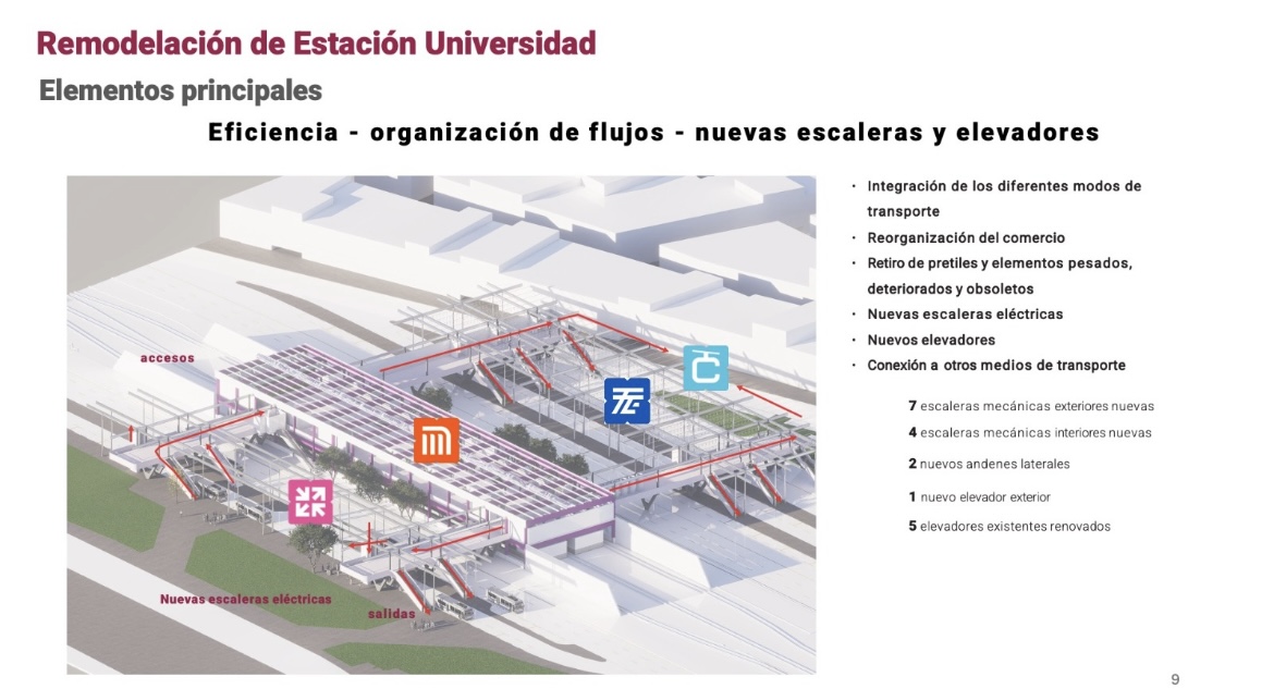 La remodelación comenzará en garajes, talleres y estacionamientos de la estación Universidad a finales de enero y principios de febrero, pero las obras al interior del Metro empezarán en julio.