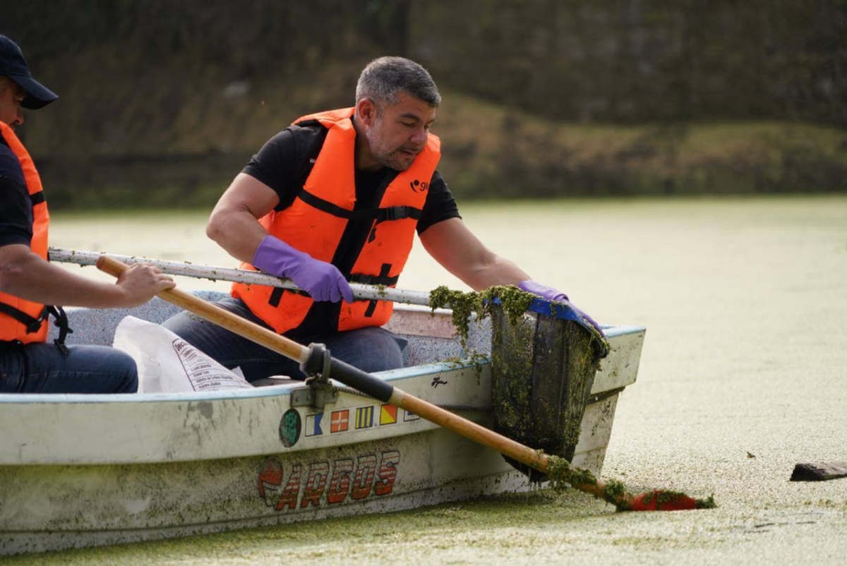 “Ahí a los lejos hay patitos nadando, que no merece la fauna estar nadando entre latas de cerveza, chanclas y botellas de PET, y eso vamos a limpiar el día de hoy”, señaló.