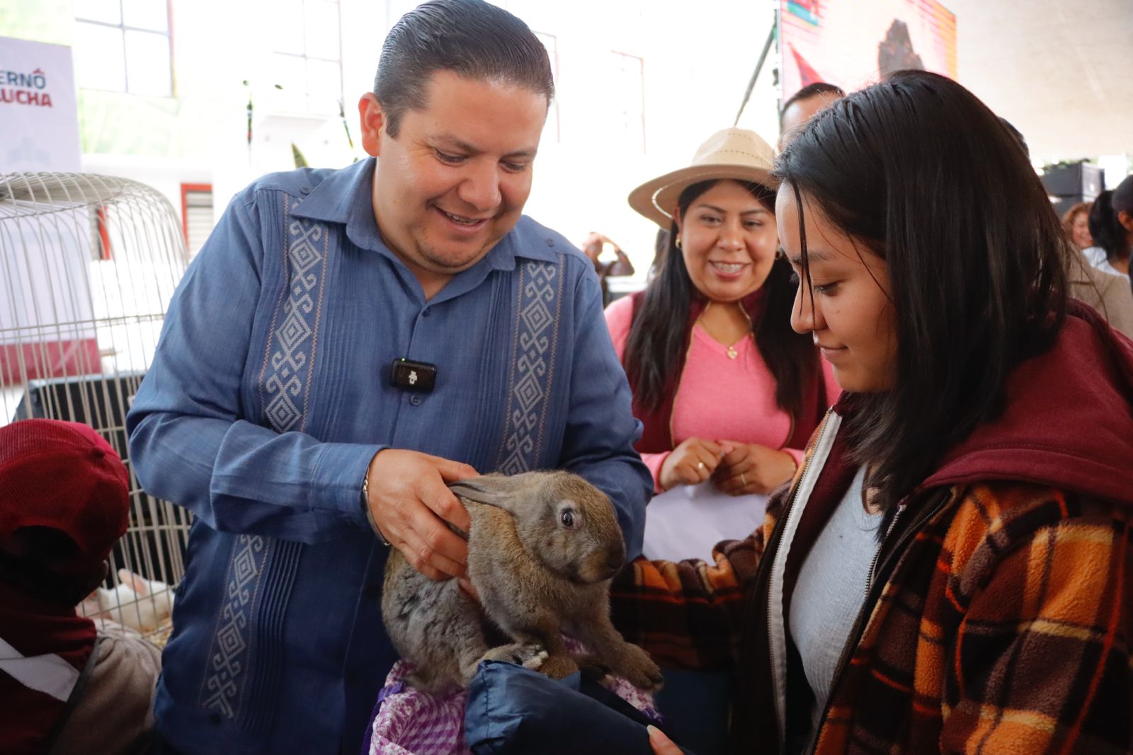 De esta forma, entregó conejos, codornices, patos, pavos y lechones como parte del programa “Rescatando tu Corral 2025”, en beneficio de 3,000 mujeres productoras de los 12 poblados.