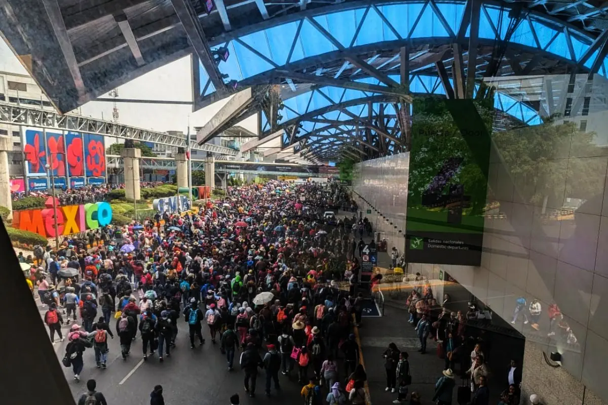 Integrantes de la CNTE, quienes mantienen un plantón en el Zócalo desde el martes 18, realizaron movilizaciones desde muy temprano este jueves en las Terminales 1 y 2 del Aeropuerto Internacional de la Ciudad de México en rechazo a la iniciativa de reforma a la Ley del ISSSTE presentada por la presidenta Claudia Sehinbaum, y retirada el pasado 18 de marzo.