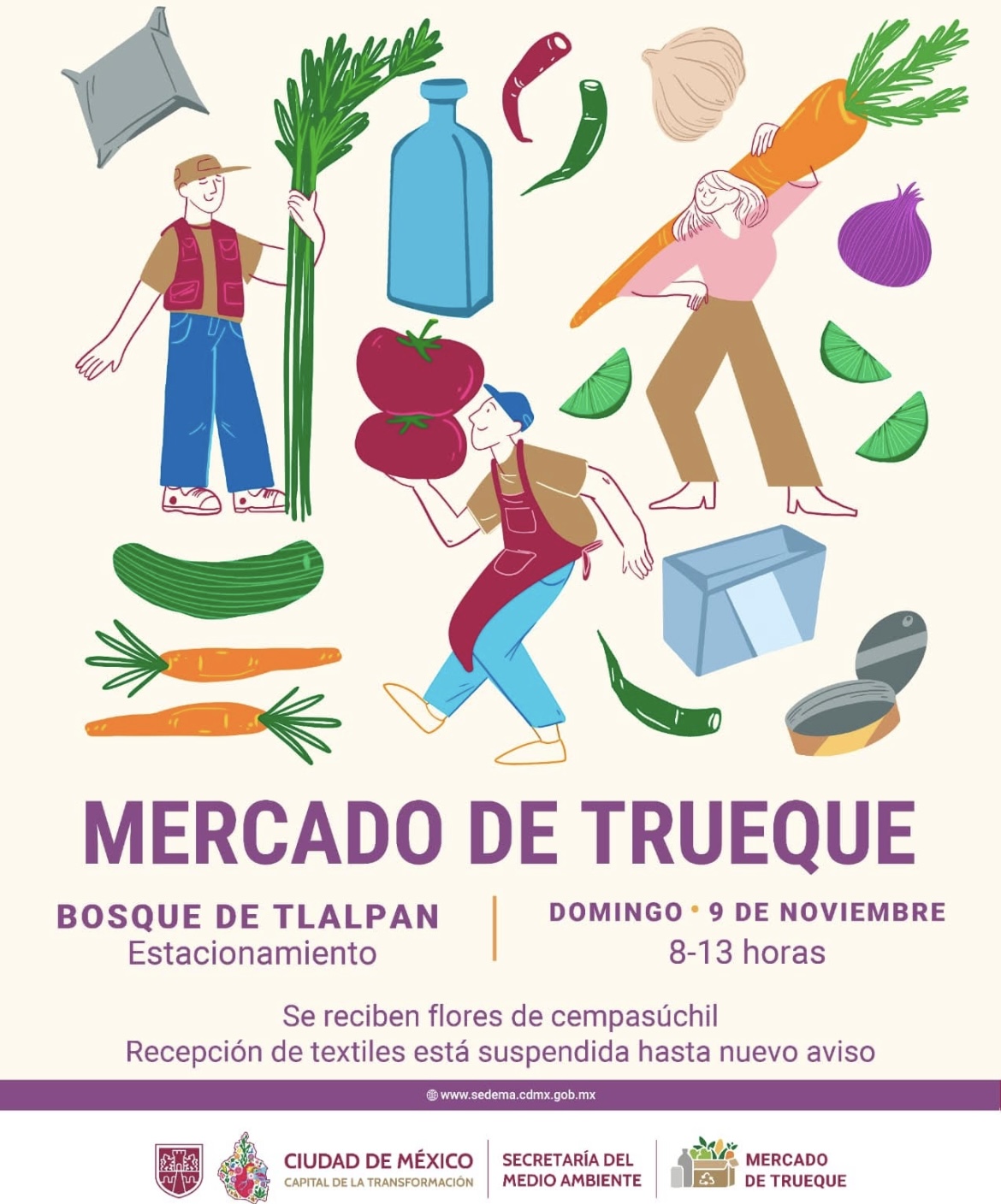 La Secretaría del Medio Ambiente de la Ciudad de México te invita a llevar tus plantas de cempasúchil y otros residuos orgánicos reciclabes al Mercado de Trueque, en el Bosque de Tlalpan.