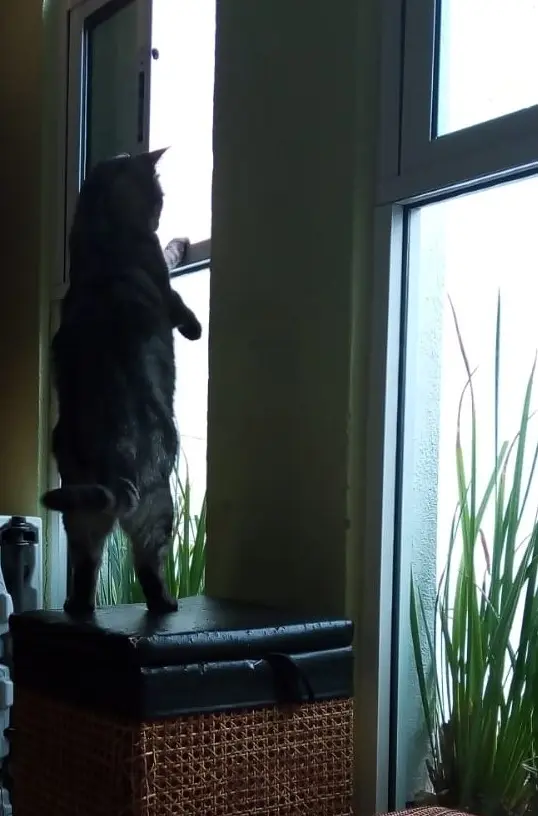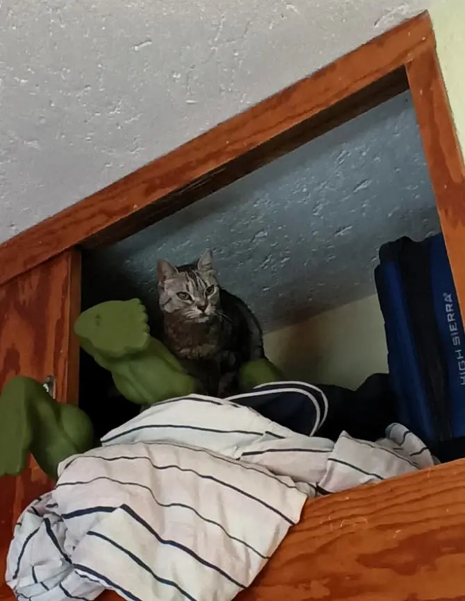 A Mishi la encontramos mi mamá y yo un día a la salida de la primaria, hace 7 años. Estaba muy enferma y la llevamos con un veterinario que la salvó. Mishi es mi hija, duerme conmigo (a veces me cambia por mi hermana), la quiero mucho, es mi hija.